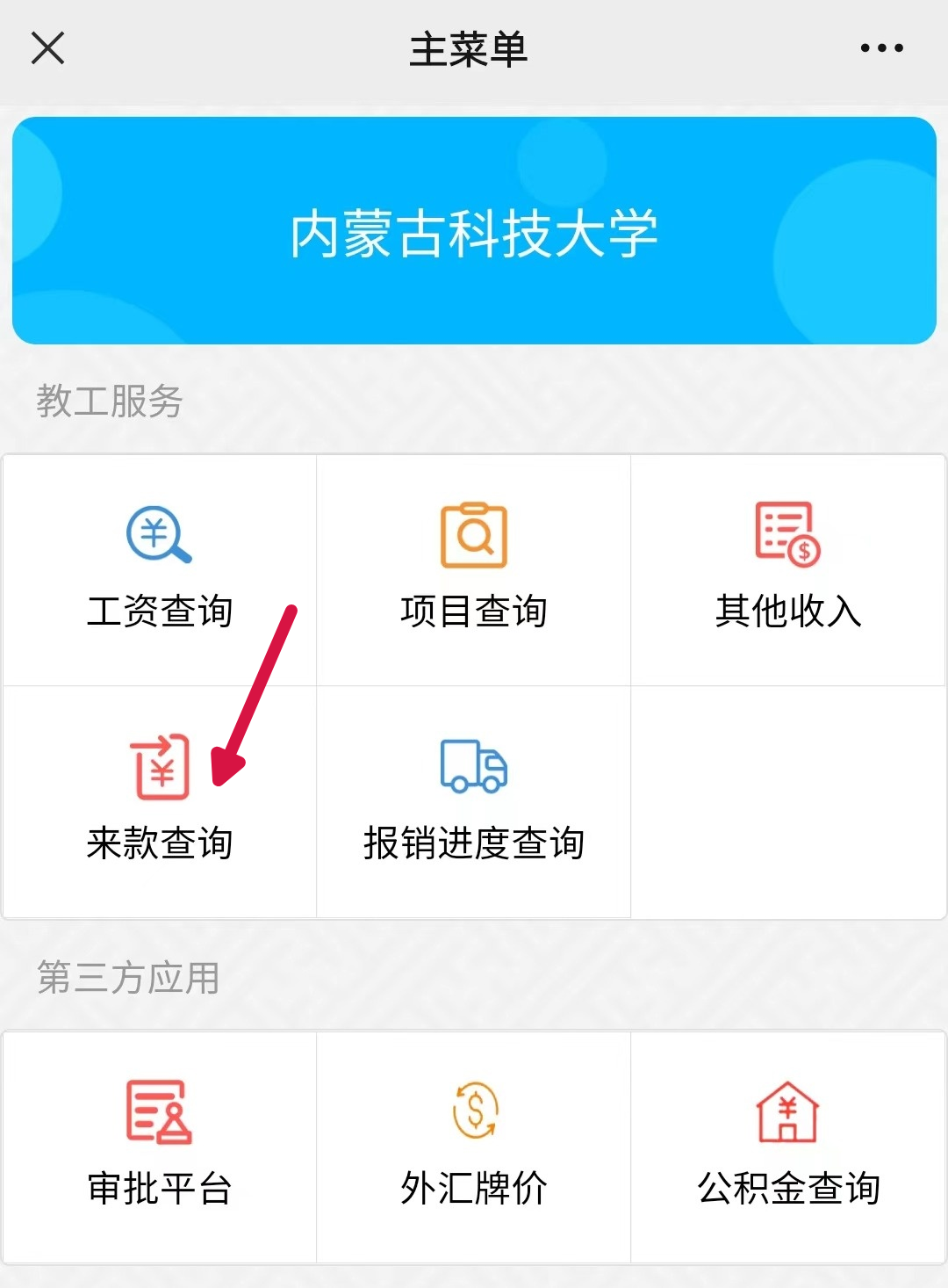 2.点击“来款查询”。