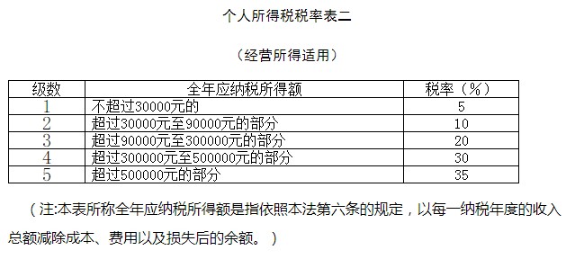(二)经营所得,适用百分之五至百分之三十五的超额累进税率(税率表附后);